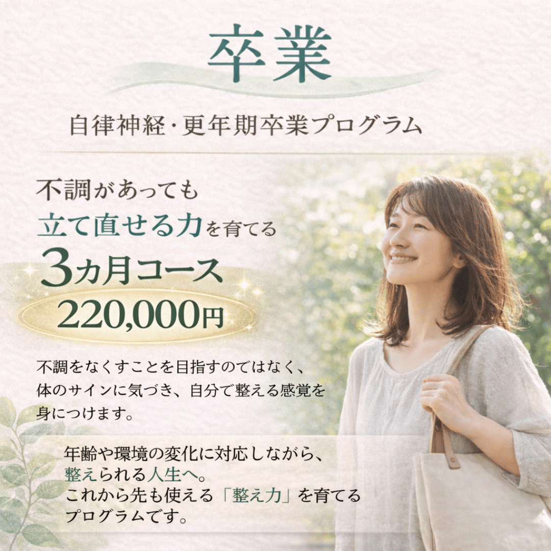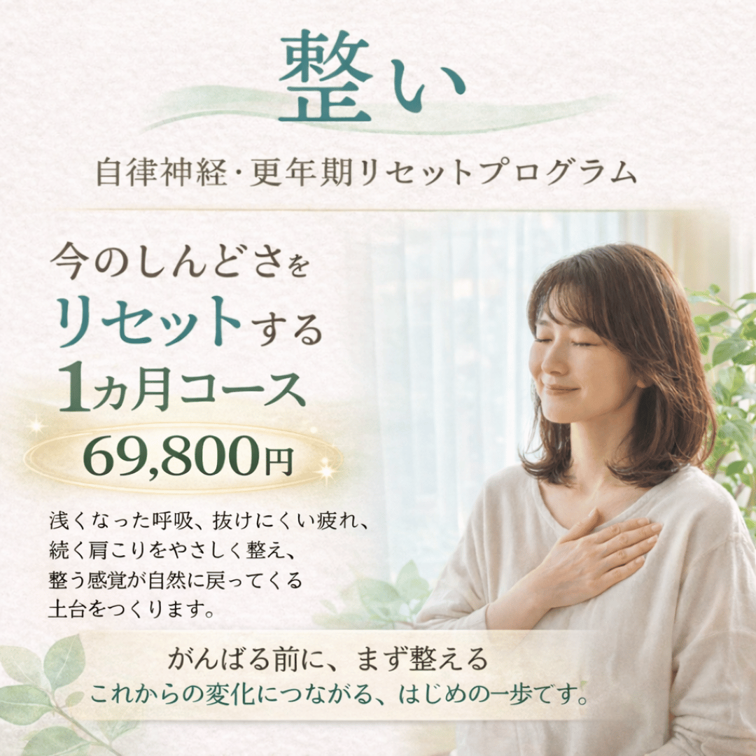自律神経や更年期を整えながら通過していくための「整え力」を育てる場所です。